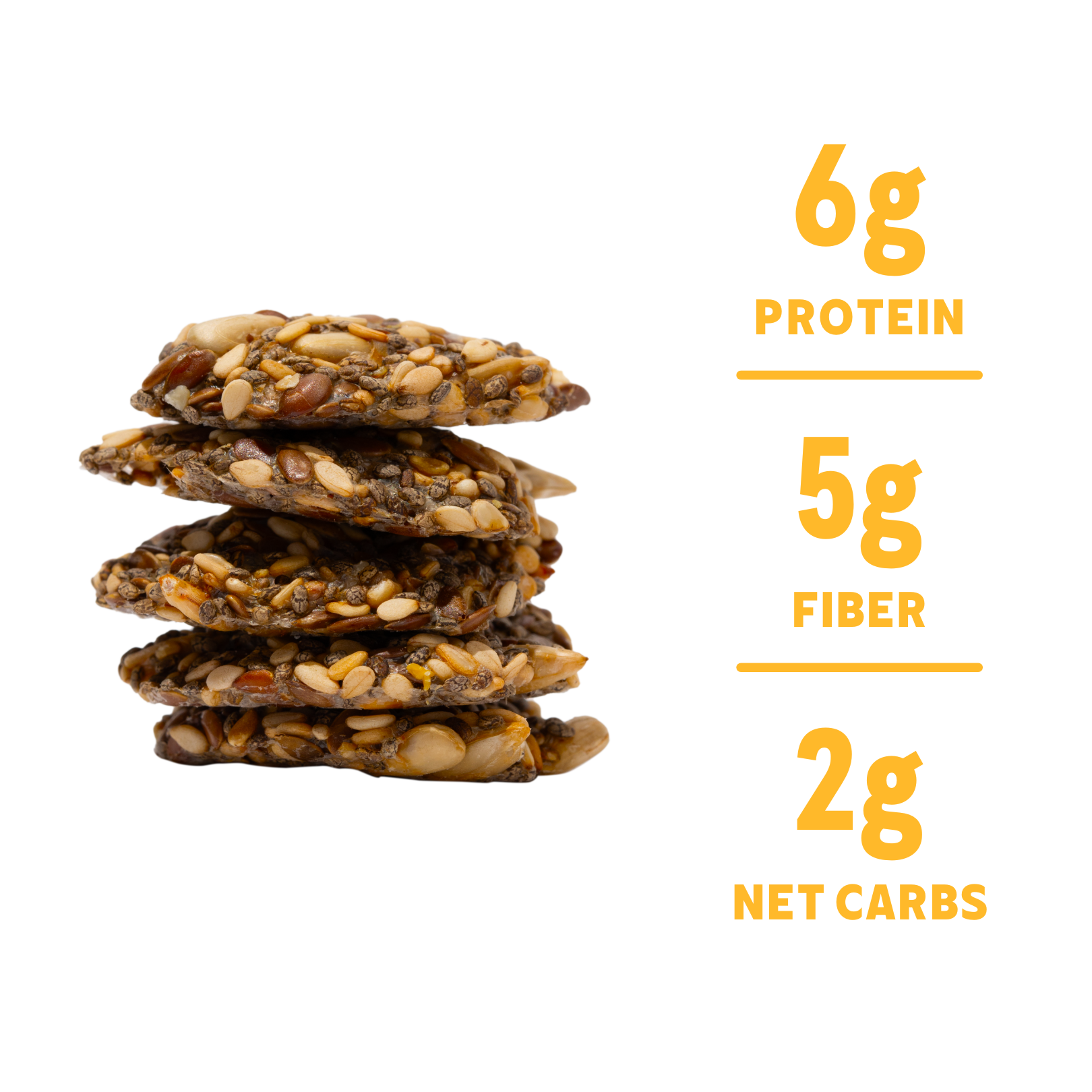 Sesame Minis: Sunflower Seeds, Flaxseeds, Chia Seeds, Sesame Seeds, less than 2% of: Pink Himalayan Salt, Black Pepper.